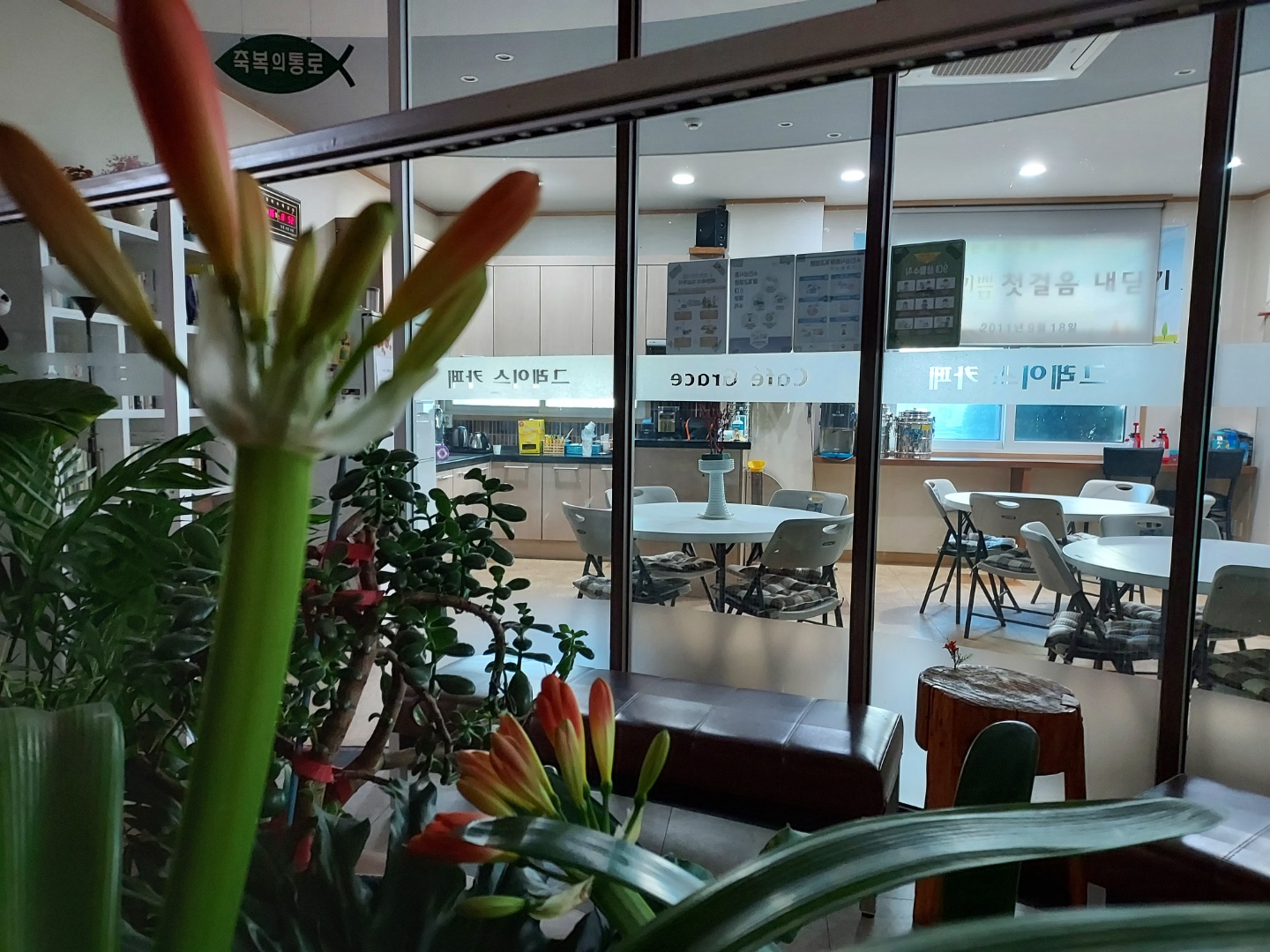 "군자란"의 이름에 걸맞게 어둑어둑한 복도에서도