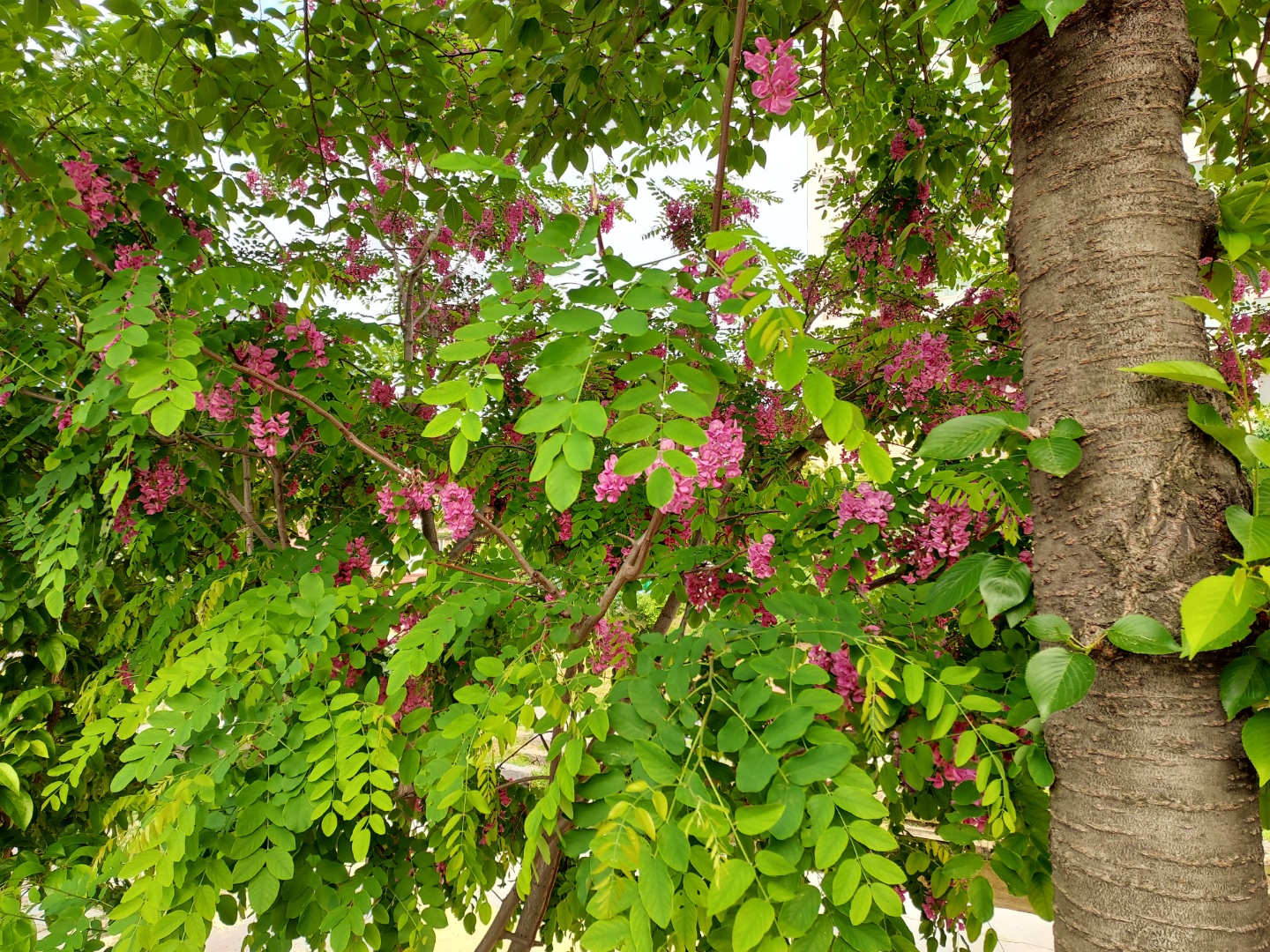 우리 동네 원성천에도 핑크 빛 아카시아가 활짝 피었습니다. 아이보리 색깔이 아니라
